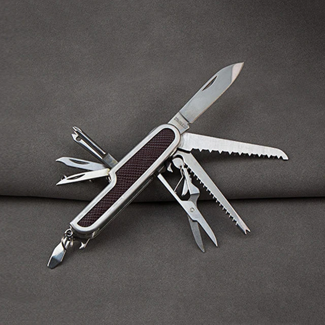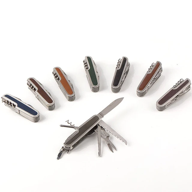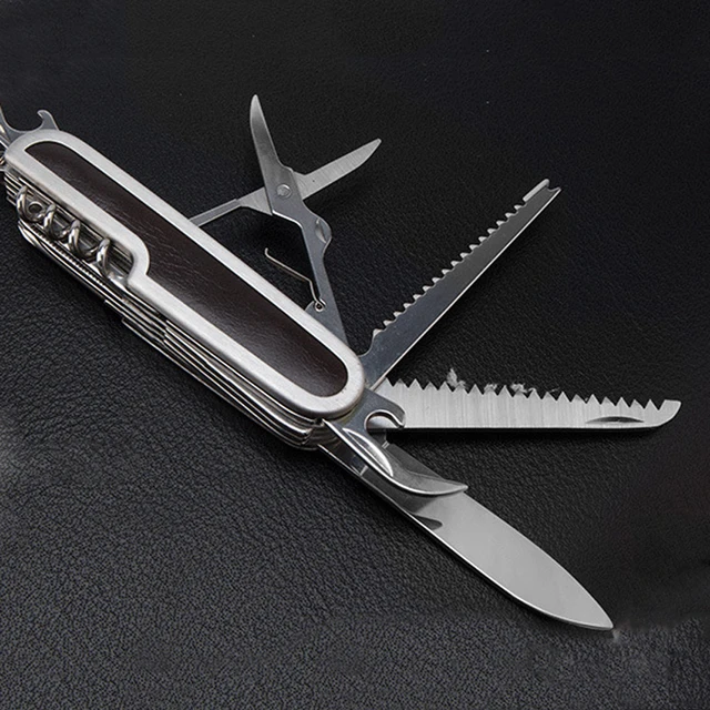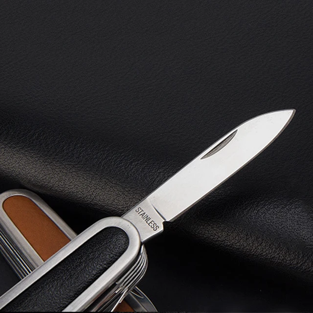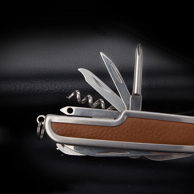 | [해외] 다기능 가죽 스위스 접는 칼 스테인레스 스틸 멀티 도구 육군 나이프 포켓 사냥 캠핑 야외 생존 칼 |