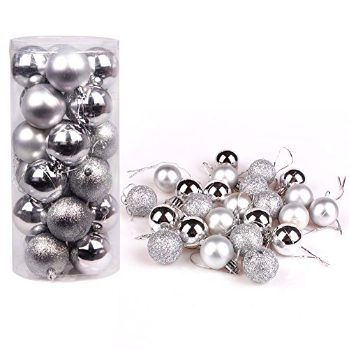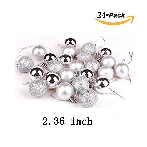 24ct Christmas Silver Ball Ornaments Barrel Plating Multi-Color Balls for Home Decorations Pendant 60mm/2.36"