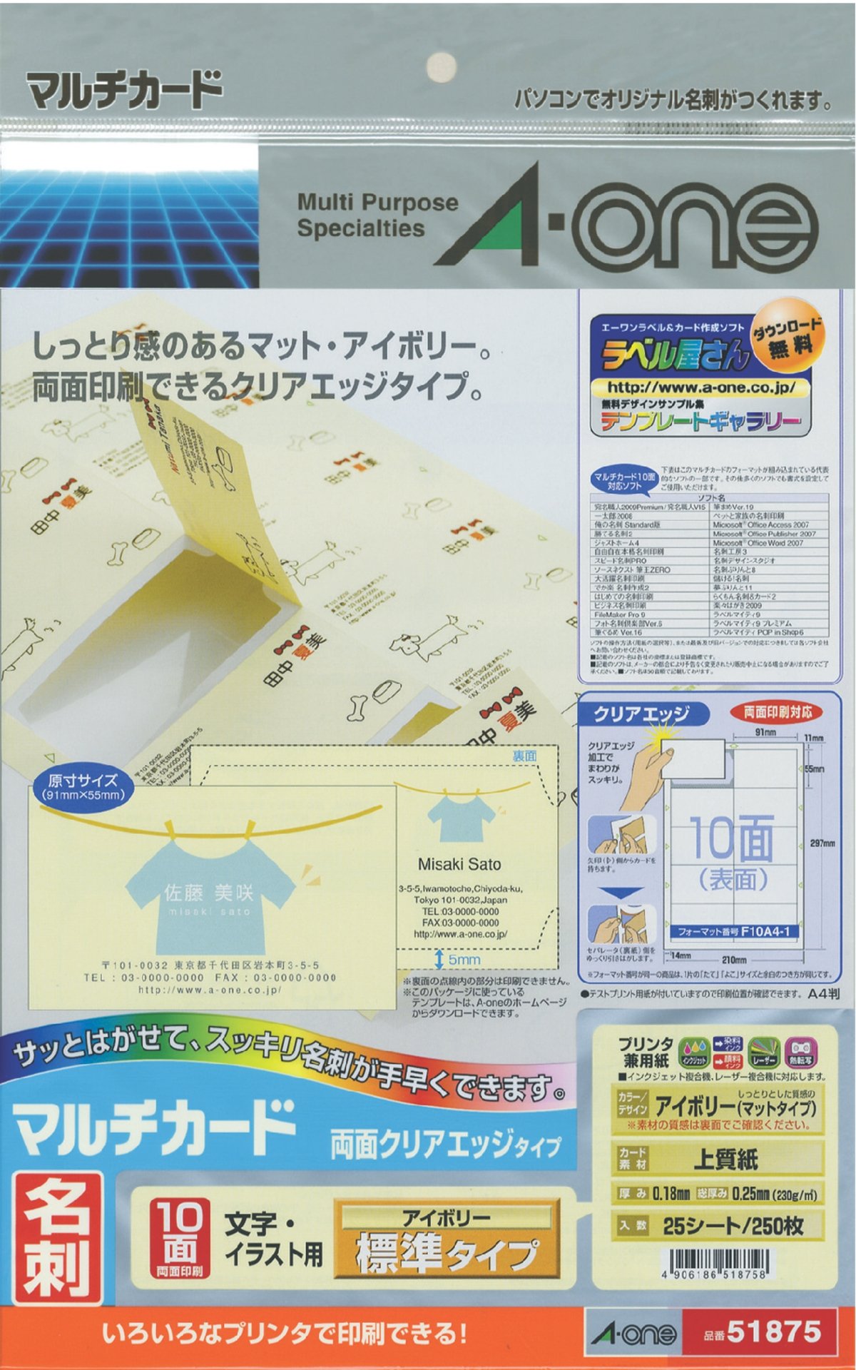 A-One multi-card business card both sides clear edge Ivory 250 sheets of 51 875
