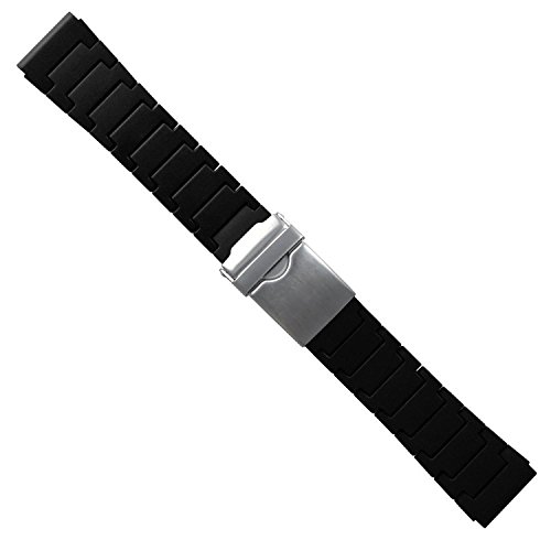 -. Feature : Fits 22mm watch / Stealth black / Light Polyurethane Link Bracelet / Flexible Link Movement / Screw in pins