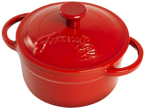 The Fiesta scarlet 0.35qt cast iron mini casserole adds a pop of color to any kitchen. Classic enameled cast iron with bold scarlet on the outside. Oven and broiler safe, perfect for dips and desserts!