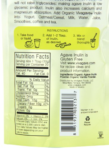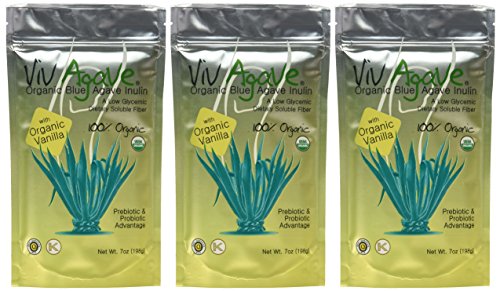 Viv Agave, Organic Blue Agave Inulin Powder, Vanilla, 7-Ounce Pouches (Pack of 3)