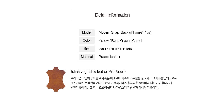 규격/크기 80*160*15mm 재료/재질 Italian vegetable leather