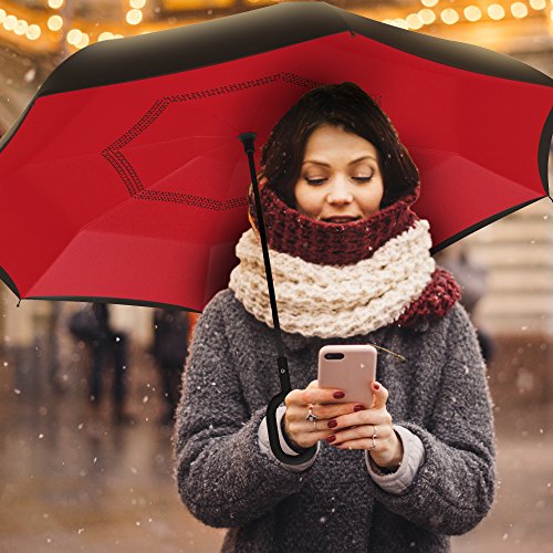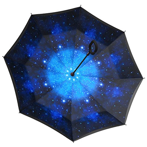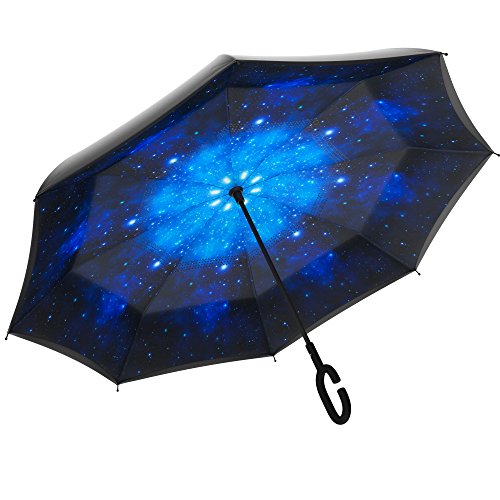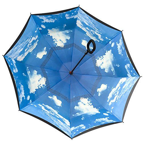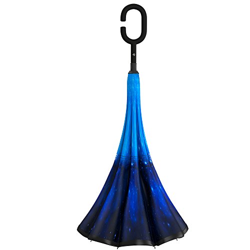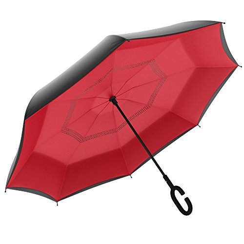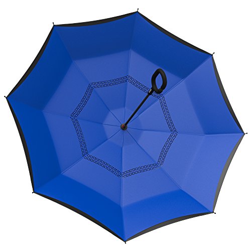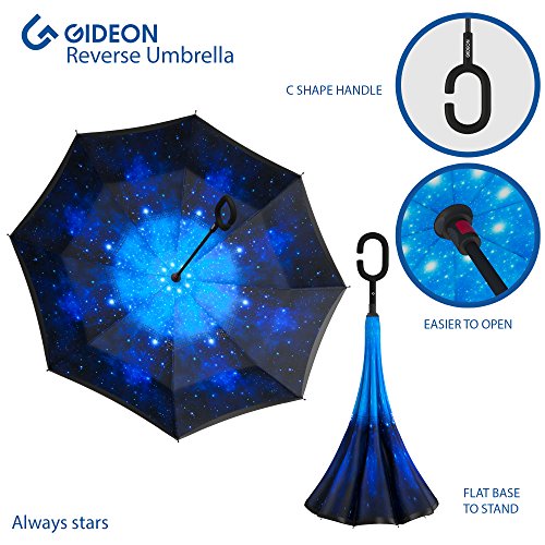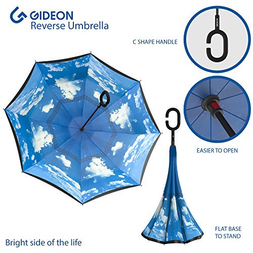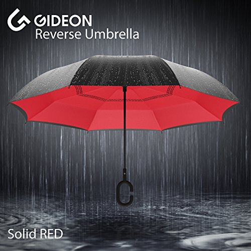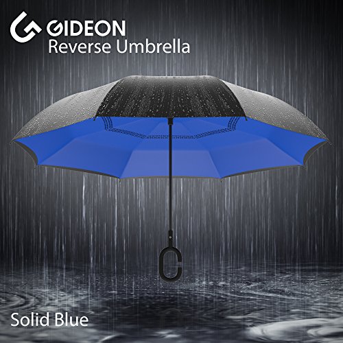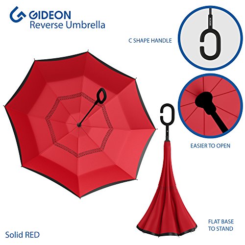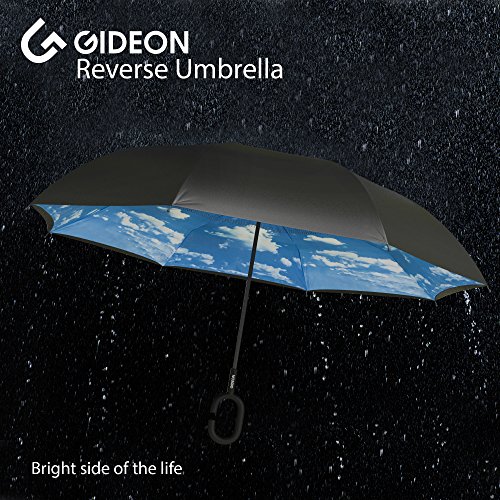 Studio : Gideon Publisher : Gideon Binding : Misc. Product Description Innovatively designed with reverse folding to protect you from getting wet; umbrella closes with wet part being folded inside. Never get wet again from your closed dripping wet umbrella. Opens easily when going back into the rain, without exposing you to the wet part. Designed with a double layered vented canopy for maximum wind-resistance. Allows for the wind to be effectively channeled through the canopy vents, effectively preventing any flipping up due to wind pressure. Guaranteed to keep you fully dry while withstanding powerful gusts of up to 55 mph without turning inside out. Features premium quality parts and is extremely durable; fortified with eight (8) reinforced ribs to amazingly withstand high winds and storms. Spacious 39" canopy provides wide rain protection coverage. Feature a unique rubberized and slip proof c-shaped handle to allow holding the umbrella while using the wrist, rather than holding it with the palm of your hand. This lets you use your hands for other tasks such as carrying stuff, using a mobile phone, etc. The Gideon Windproof Reverse Umbrella features an amazing self-standing feature to allow drying without the need to lean it against a wall. Simply close the reverse umbrella and put it down, the umbrella will remain standing on its own.