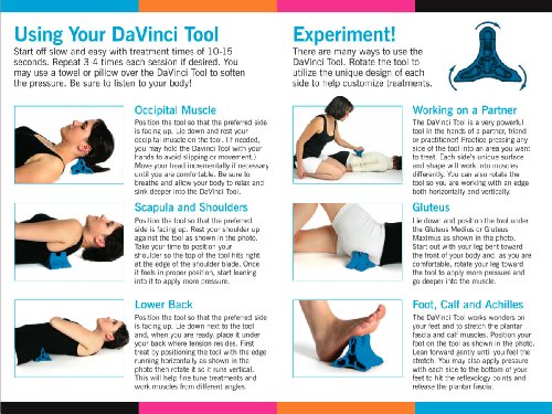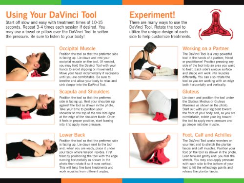 From the creator of the Body Back Buddy comes the DaVinci Tool, a revolutionary massage pain management device. Expertly designed for use on a wide range of areas this tool can effectively help you treat your occipital muscles, scapula, shoulders, lower back, gluteus, feet, calves achilles. Locating, accessing addressing pain has never been so effortless. Sporting 3 specially crafted edges a unique design, this dynamic multi-purpose massage tool offers several approaches to massage depending on which side you use. The blunt edge is intended for a softer treatment, as well as being helpful when massaging larger muscle groups. The sharp edge is ideal for deeper, more direct massage allowing you to penetrate, breaking up tension in the deep tissue. Lastly the serrated side is perfect for fingers toes, while also doubling as a grip when using as a handheld or partner massage. Whether you are a physical therapist, massage therapist, chiropractor or a person suffering from chronic pain the DaVinci Tool has an edge for you. With just 15 minutes of use you can find relief relaxation after a long stressful day. At Body Back Company we take great pride in our products. Every DaVinci Tool is made in Portland, OR from a medical grade, non-latex, hypoallergenic plastic. Our lightweight, compact incredibly durable design translates to a 5-ounce device that measures 4" to each edge comes with a lifetime warranty. If the DaVinci Tool is ever damaged simply contact us we will replace no questions asked. Aid Treat: Neck PainHead PainLower Back PainOccipital PainHeadaches MigrainesTension Stress SyndromesTemporomandibular Joint Disorder (TMJ)Cervical SyndromeSpine RealignmentSlumped PostureLumbar DysfunctionLordosisSciaticaPlantar FasciitisSelf-Mobilization Strengthening 0 |