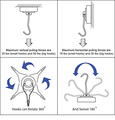 SUPERIOR QUALITY: Our product features high quality metal hooks with a super strong 1" neodymium INDUSTRIAL GRADE magnet that will last a lifetime. Small but strong magnetic hooks that can be used in any environment.