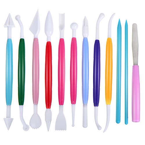 Willbond 12 Pieces Clay Modeling Tools Clay Shaping Sculpting Tools Set Pottery Carving Tools for Ceramics Clay Pottery, Assorted Colors