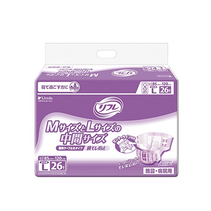 원본상품명: 【病院施設用】 リフレ 簡?テ?プ 止めタイプ ?モレ防止 小さめLサイズ 26枚入【ADL?分:?て過ごす事が多い方】