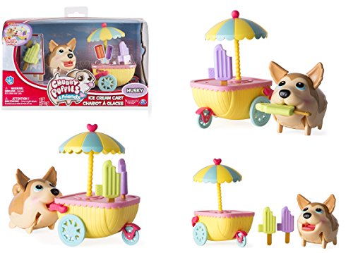 -. Feature : Chubby Puppies are stumbling, fumbling, tumbling cuteness you'll fall for! Each Chubby Puppy is unique and waddles and hops in an adorable way. Customize their legs for even funnier walks and hops! This Chubby Puppy comes with his very own Ice Cream Cart and it's puppy powered! The Chubby Puppy automatically pushes the Ice Cream Cart. It's cuteness overload! Bring home the undeniable cuteness of Chubby Puppies and adopt your Husky today! / Includes: 1 Puppy, 1 Ice Cream Cart, 2 Ice Cream Pops, 1 Instruction Guide / Chubby Puppies are stumbling, fumbling, tumbling puppies you'll fall for! / The Ice Cream Cart is puppy powered! The Chubby Puppy automatically pushes the Ice Cream Cart / Chubby Puppies Husky Ice Cream Cart is for ages 4 and up and requires 1 AAA battery (included)