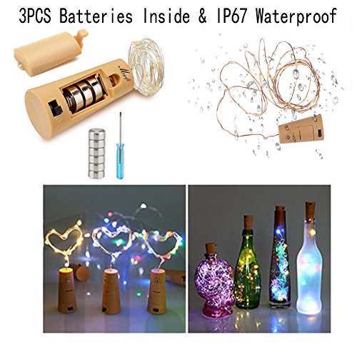 -. Feature : ★ DIY Warm Atmosphere: 6 Pack of 360° bottle corks string light,provide warm white and mutilcolor choices,softness,can be approP.R.Iate bending,freedom with a bottle,small potted plants,Christmas trees. / ★ Certification Passed: Powered by 3 pieces LR44 battery (included) provide up to 72 hours,ROSH certification and CE certification,no solder joints,easy to break down,small diameter about:0.16in. / ★ High Quality Materials:Environmentally friendly ABS and copper,High power,high efficiency,long life,easy to install. / ★Waterproof and Security: IP67 waterproof,no heat,can touch,safety,suitable for indoor and outdoor,both elderly and children can use. / ★ Romantic Modeling: Small love shape,big love shape,five-pointed star shape,snowflake modeling,large snowflake modeling,sunflower modeling,octagonal shape,Clover shape,small ginger cookies snowman modeling,snowman modeling,butterfly modeling,Modeling,skull shape,pumpkin shape,crutches modeling,Christmas crutch shape,Christmas socks modeling,Santa Claus modeling,Christmas tree modeling,large Christmas tree modeling and diamond modeling.