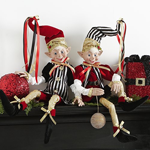 30 Inch Tall Set of 2 Posable Elves, 2017 Christmas Elves in Red, Black and Gold
