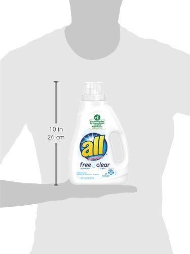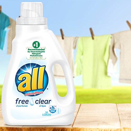 When it comes to laundry care for sensitive skin, all Liquid Laundry Detergent is the obvious choice. This hypoallergenic laundry detergent is the #1 recommended detergent brand by dermatologists, allergists and pediatricians for sensitive skin. 100% free of perfumes and dyes, all Free Clear is hypoallergenic and gentle on sensitive skin. Use with all Free Clear fabric softener and dryer sheets for clean and soft clothes with static cling reduction in the dryer. This detergent is safe to use in any washing machine and at any water temperature. This pack includes one 46.5-fluid-ounce bottle, enough for 31 loads.