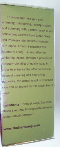 - Feature : One of the most powerful, extreme whitening soaps available! / For facial and full-body skin whitening / Contains grape seed and pomegranate extracts / Powerful alpha-arbutin whitener and Vitamin E anti-oxidant / Leaves your face and body skin fair, fresh and clear!