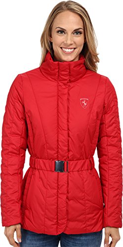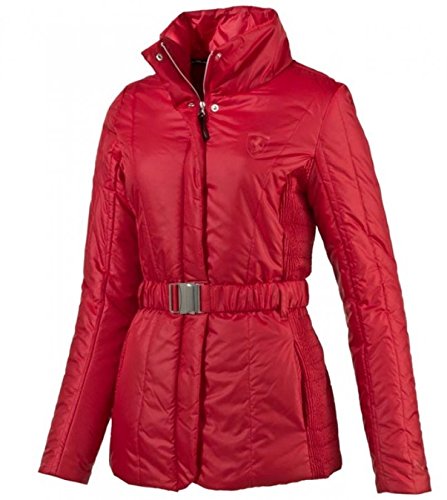 Puma at a glance. Puma is one of the world's leading sport lifestyle companies that designs and develops footwear, apparel and accessories. PUMA starts in Sport and ends in Fashion. Ferrari Shield high density/ shimmer print, PUMA Cat logo high density print, Ferrari Shield PU badge, Ferrari sign off high density/ shimmer print, warm cell heattransferred label, anniversary woven label, padded, articulated sleeves, contrast zipper teeth, red stripe puller tab, pin tuck construction, elastic removable belt, side seam pockets, ACTV emboss lining, Keep Heat lining. 100% polyester, Taffeta, 64 g/m, Cire Back, Downproof. Lining 1: 100% polyester; Taffeta, 75 g/m, Cire Back, Embossed. Lining 2: 100% polyester, Plain Woven: pin stripe, 60 g/m, Cire Back, Yarn Dyed. Filling 1: 100% polyester, Padding: non-migrating padding, 100 g/m, heat conjugated on both sides. Filling 2: 100% polyester, Padding: non-migrating padding, 80 g/m, heat conjugated on both sides.Feature