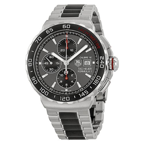 -. Binding : Watch -. Brand : TAG Heuer -. Color : Black -. Department : mens -. EAN : 0618819387856 -. Feature : Stainless steel watch featuring gray ceramic bezel with tachymeter and sunray dial with luminous hands/markers, date window, and three subdials / 44-mm stainless steel case with anti-reflective sapphire dial window / Swiss-automatic movement with analog display / Stainless steel bracelet featuring black ceramic center links and deployant clasp with push-button closure / Water resistant to 200 m (660 ft): In general, suitable for professional marine activity and serious surface water sports, but not scuba diving -. Label : TAG Heuer -. Manufacturer : TAG Heuer -. Model : CAU2011.BA0873 -. MPN : CAU2011.BA0873 -. PackageQuantity : 1 -. PartNumber : CAU2011.BA0873 -. ProductGroup : Watch -. ProductTypeName : WATCH -. Publisher : TAG Heuer -. Studio : TAG Heuer -. Title : TAG Heuer Men's CAU2011.BA0873 Formula 1 Stainless Steel Automatic Watch -. UPC : 618819387856