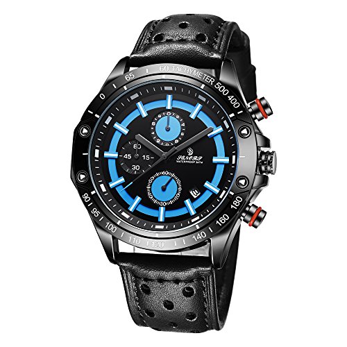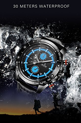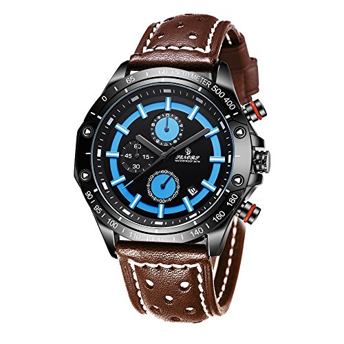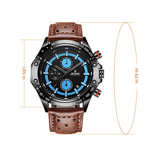 -. Title : Men's Fashion Business Leather Watch Chronograph With Dress Sport Analog Quartz Auto Date Wrist Watch