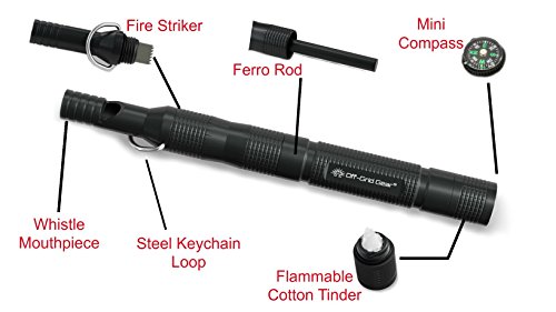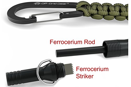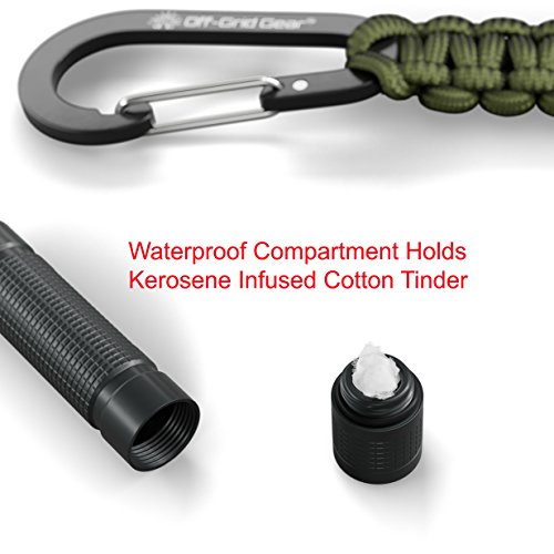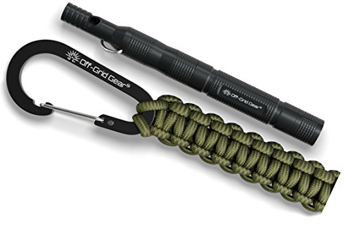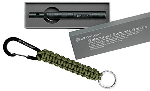 High Decibel Camping & Hiking Survival Whistle with Ferro Rod, Tinder In Watertight Compartement, Mini Compass, Aircraft Aluminum Construction in a Gift Box AND Paracord Keychain Carabiner