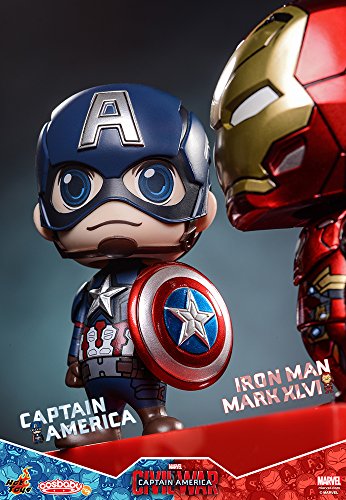 ホットトイズがお贈りする「コスベイビー」シリーズに、超大作アクション映画『シビル・ウォー/キャプテン・アメリカ』がラインナップ!キャプテン・アメリカとアイアンマン・マーク46の2体ボックスセットが登場だ!「コスプレさせられた赤ちゃん」をコンセプトとした「コスベイビー」シリーズより、映画『シビル・ウォー/キャプテン・アメリカ』に登場するキャプテン・アメリカとアイアンマン・マーク46を、全高約10センチのポップでカッコかわいいデフォルメフィギュアとして立体化。ヘッドはプルプル揺れる姿がユニークな、ボブルヘッド仕様となっているぞ!パッケージは、そのまま飾れるウィンドウボックスだ。Feature