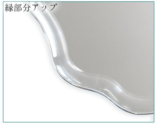 | 透明感のある美しいデザインのノンフレームミラー。 |