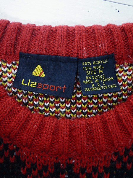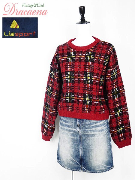 Ladies ブランドLiz sports リズスポーツ カラー赤ベース メール便不可 コンディション★★★ モデル- 素材アクリル85%・ウール15% 表記サイズM 実寸サイズ 着丈 49 cm 身幅 53 cm 肩幅 56 cm 袖丈 49 cm ※ウエスト・ヒップ以外は平置き採寸