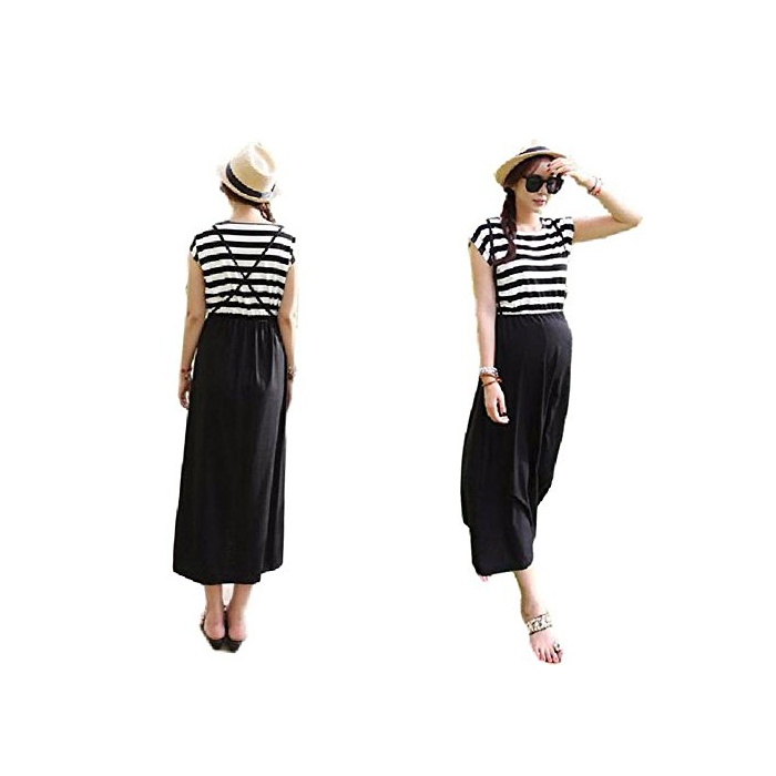 BEREAM 마타니티 원피스 마타니티 원피스 롱 길이 반소매 보더 봄과 여름