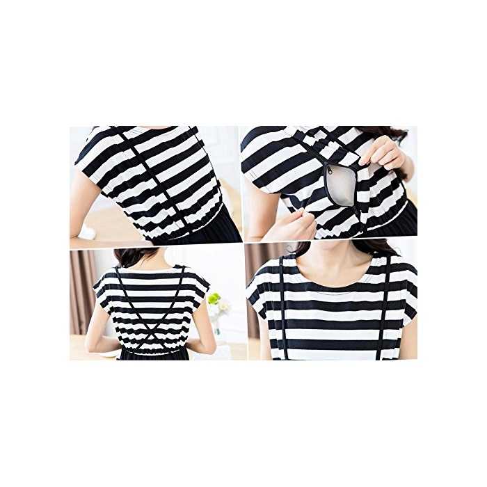수유복 마타니티 원피스 수유구 패스너 봄과 여름 보더 블랙 ( L 사이즈 )