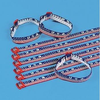 Nylon "USA" Woven Friendship Bracelets. Adjusts to size with a plastic buckle. 10"