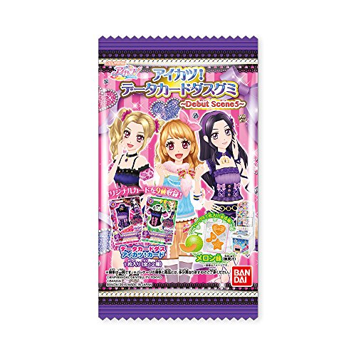 全12種よりメーカー規定の比率に従い封入。“アイドル活動”をテーマにした女児向けデータカードダス「アイカツ!」のデータカードダスカード付きトレーグミ。今回は、2015年10月稼動予定のDCD4thシリーズ1弾で登場するキャラクターのカードをラインナップ予定。再録アイテムもグミオリジナル背景デザインでラインナップします。「オリジナルカード」3種、「オリジナルカラーカード」3種、「再録オリジナルデザインカード」6種の計12種。北海道出身の新登場キャラクターに合わせて「メロン味」を予定しています。Feature