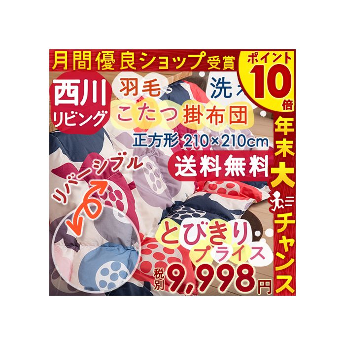 원본상품명:【大感謝ク?ポン?券中!】送料無料 丸洗いOK!こたつ布?【西川こたつ布?正方形】洗濯機で洗える!!ふんわり?くて暖か~い♪西川リビング羽毛コタツ掛布?(正方形)リバ?シブル(丸洗いOKウォッシャブル)