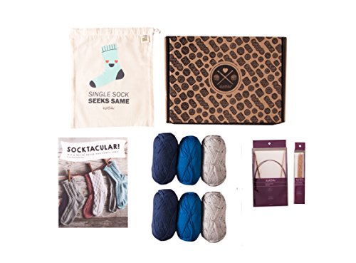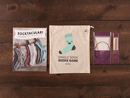 - Kit Includes: 6 balls Stroll Sock yarn — Fingering Weight (75% Superwash Merino Wool, 25% Nylon; 231 yards/50g), Socktacular! Knit Picks exclusive pattern collection book, US size 1 (2.5 mm) 40” wooden circular knitting needles, a set of US size 1 (2.5 mm) 6” double pointed needles, and a 100% cotton canvas drawstring project bag; 1,386 yards total yardage