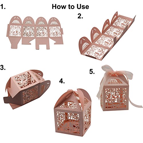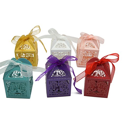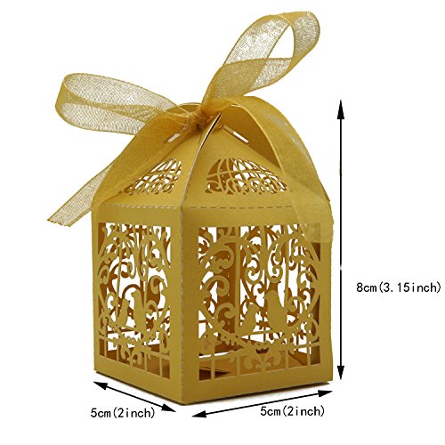 - Material: Pearlescent Art Paper,Hollow out Love Birds Heart design favor boxes, come with free ribbon.