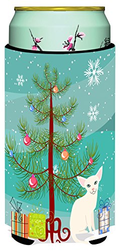 Caroline's Treasures Foreign White Cat Merry Christmas Tree Tall Boy Beverage Insulator Hugger, Multicolor
