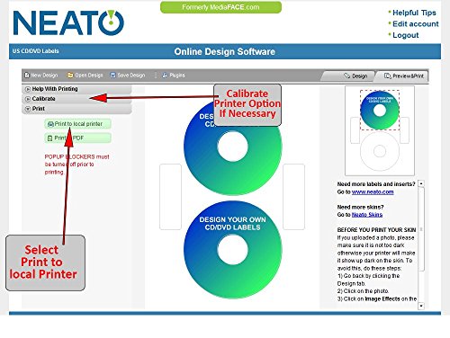 PRODUCT SPECIFICATIONS: Package contains (1) Neato CD/DVD Economatte Labels – 50 Sheets – Makes 100 Labels. Each sheet includes (2) 118mm CD/DVD Labels and (2) Utility Labels. Each sheet measures 8.5” x 11” total. Includes free access code to Neatos Online Design Software. Made in the USA.