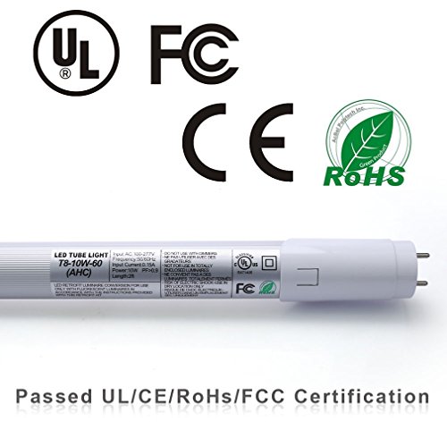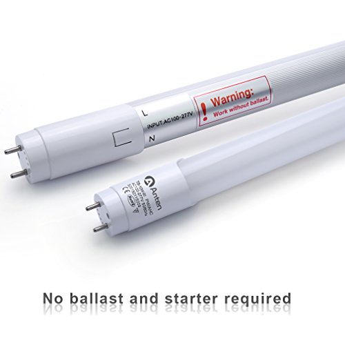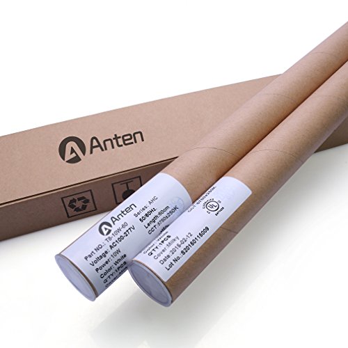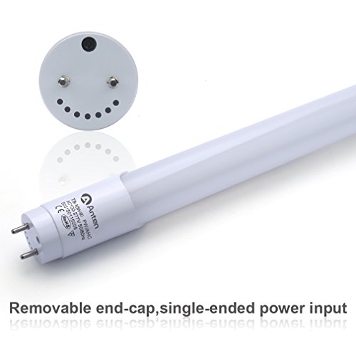 2-Pack of Anten T8 LED Shop Light Tube, 2ft, 10W, 6000K (Bright White Glow), Single-Ended Power, Milky Cover, G13 Lighting Fixtures, UL-Listed