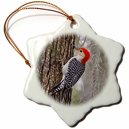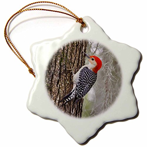 3dRose orn_146668_1 Red-Bellied Woodpecker Bird, Male on Oak Tree-Us44 Ldi0528-Larry Ditto-Snowflake Ornament, 3-Inch, Porcelain