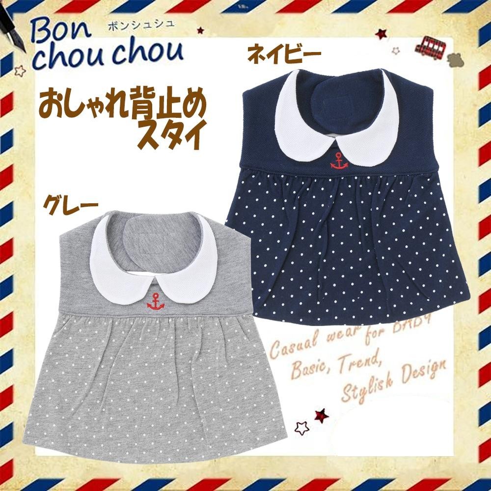 ドット柄の切り替えが、可愛さ満点のスタイです☆飾り衿もとってもキュート♪着脱簡単なマジック式です。 製造国:中国 素材・材質:綿100% 仕様:洗濯機使用可乾燥機使用不可丈(首元から裾まで):33cm ※サプライヤー直送品 ご注文後2~3営業日後の出荷となります【商品名】P8520 Bon chou chou ボンシュシュ おしゃれ背止めスタイ グレー・P8520-GY