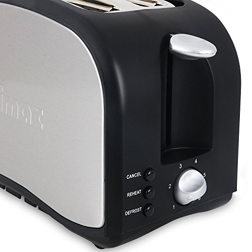 Cusimax 800 Watt 2 Scheiben Toastautomat Brotroster Edelstahl Design Doppelschlitz Toaster Aufwarmen, Auftauen Stop Taste, CMST-80