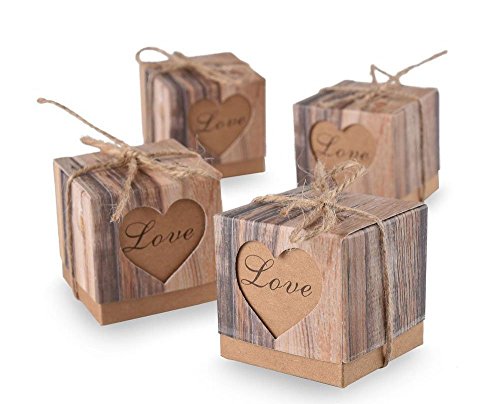 123Arts 100 pcs Candy Boxes Love Rustic Kraft Bonbonniere With Burlap Jute Shabby Chic Vintage Twine Wedding Favor Imitation Bark