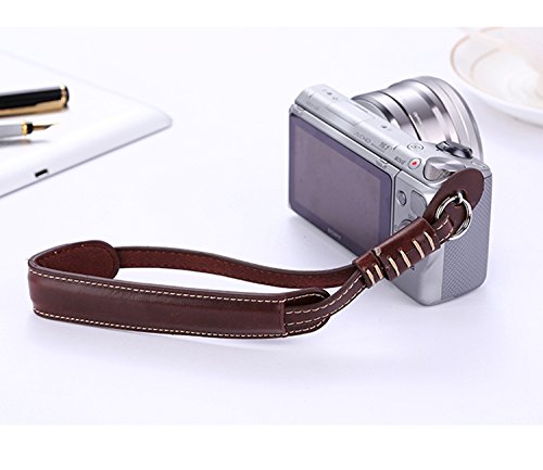 Professional Leather Wrist Hand Strap for Sony Alpha A5000 A6000 NEX-3 NEX-5 NEX-5T NEX-3N NEX-5N NEX-7N - Coffee