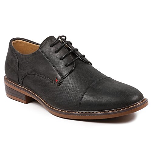 Binding : Apparel Product Description classic colors " Black , Brown , Tan , Blue " , elegant look dress shoes Featuring Synthetic upper, leather lining , classic lace up design for secure hold, classic cap toe design, cushioned footbed for comfort, and synthetic outsole. 0