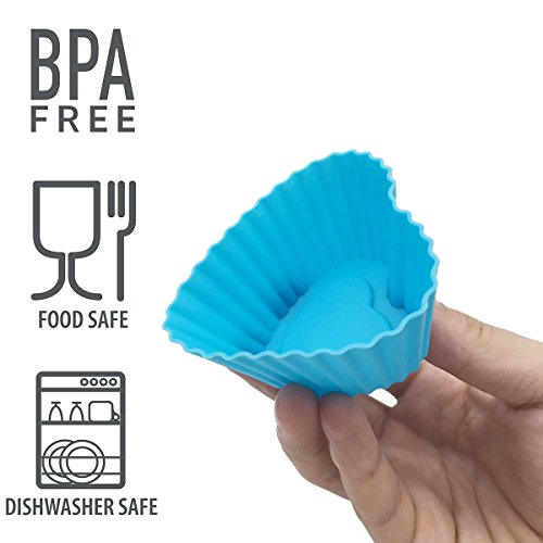 - [PREMIUM QUALITY] Baking Cups are made of 100% Food-grade silicone, FDA approved,BPA free. Eco-friendly, non-toxic, flexible, reusable and durable. No chemical coatings, no fillers, pinch test passed! Temperature Safe from -40°F to +450°F. Oven, Refrigerator, Freezer, Microwave and Dishwasher Safe.