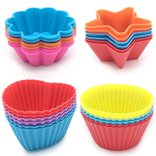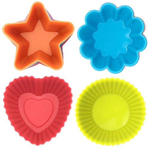 KIDAC Reusable Silicone Cake Molds, Baking cup with Nonstick and Heat Resistant, Reusable Silicone Muffin Cups, 4 Shapes, each shape has 6 pcs with random colors(24-Pieces)