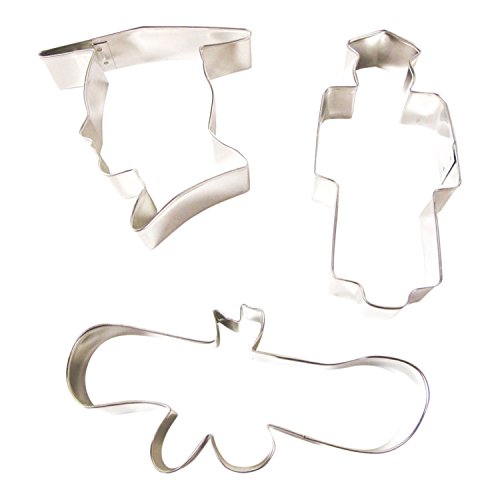 TwiceBooked Graduation Celebration Cookie Cutter Bundle - Set of 3 Includes a Graduate in Mortar Board Cap, a Graduate in Gown and a Diploma Sized at 3 1/2 - 5 Inch Metal Cutters - Made in the USA
