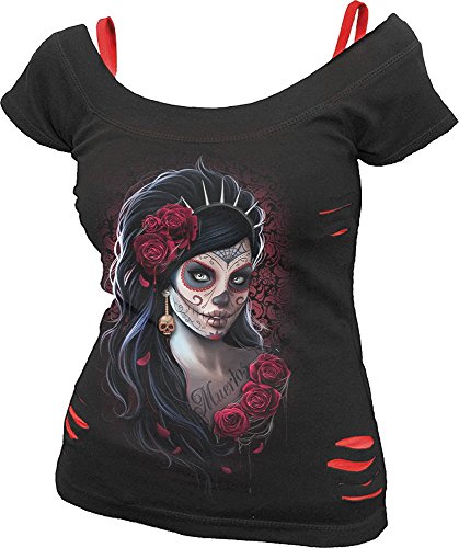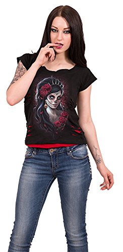 -. Feature : Dia de Los Muertos, the Mexican celebration of souls long since departed and those they have left behind. / 2in1 Red Ripped Top Black is made of Top Quality 100% Cotton, Knitted using skin friendly, Azo-free, Reactive dyes. / Spiral is a long-established brand specialising in heavy metal and gothic fashion, with men's and women's gothic clothing. / Spiral artwork covers a range of themes from tribal designs, gothic, horror, fantasy and fetish to the more commercial vintage, fashion and distressed, screen P.R.Inted to last. / Just one of the unique 'Fashion-T-Shirts' from a huge range of Alternative Fashion products from Spiral Direct!