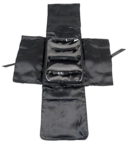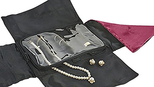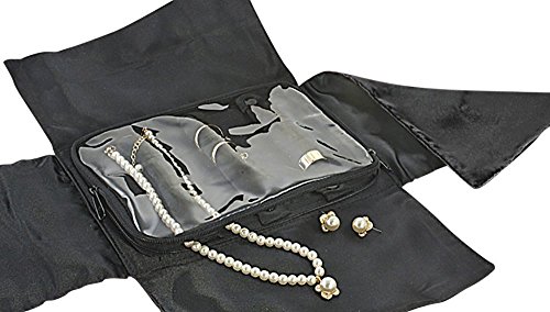 EASY TO USE : Undo the bow, fold back the fabric flaps, open the zippered vinyl case, slip rings over the three padded rows covered in satiny fabric and snap closed to keep rings organized and in place. Earrings which are the shape of rings can also be slipped over the padded rows.