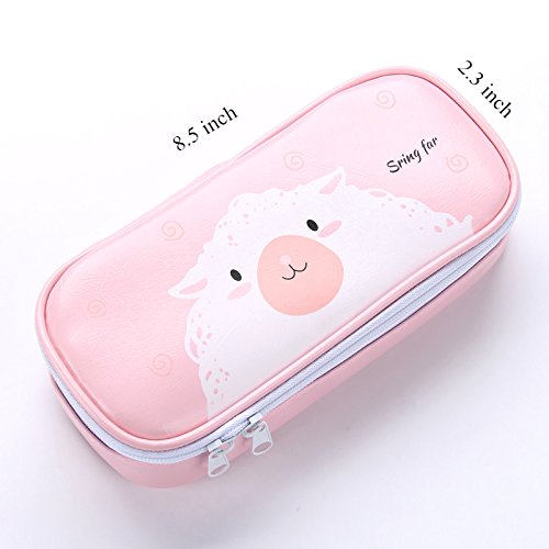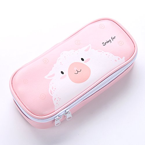 GO-OFFICE Pink Sheep Student Pu Double Zippers Pencil Case Pen Hlder for Back to School Office School Gift