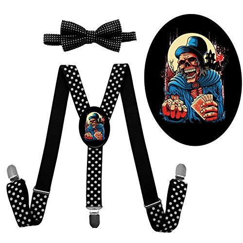 (QZ-Lee)/Accessories/Suspenders Cummerbunds/DIRECT FROM USA/QZ-Lee Skull Gambler Suspender Bow Tie/Unisex Suspender/Adjustable Suspender/Y-Back Suspender