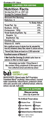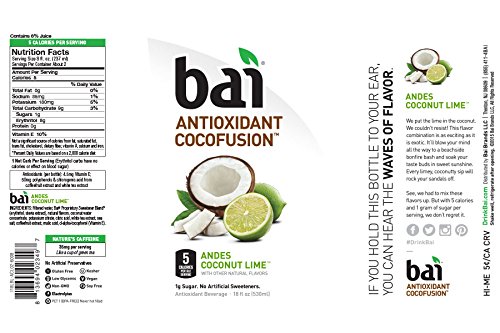 -. Title : Bai5 Bai Cocofusion Andes Coconut Lime, Antioxidant Infused Beverage, Cocofusion Andes Coconut Lime, 12 Ounce (Pack of 12)