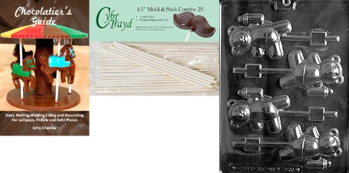 Cybrtrayd Baby Bear with Bottle Lolly Baby Chocolate Candy Mold with 25 4.5-Inch Lollipop Sticks and Chocolatier's Guide