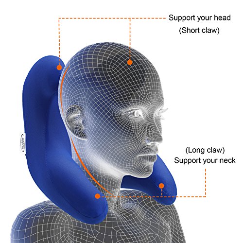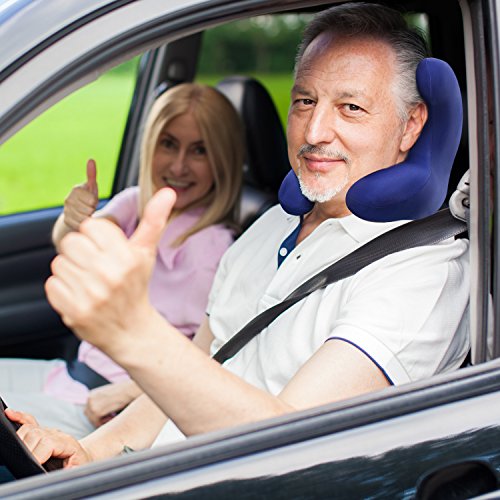 Mudder Neck Pillow Car Travel Head Rest Neck Chin Support Pillow Memory Foam, Adjustable for Airplanes, Buses, Trains, Camping, Office Napping (Blue)